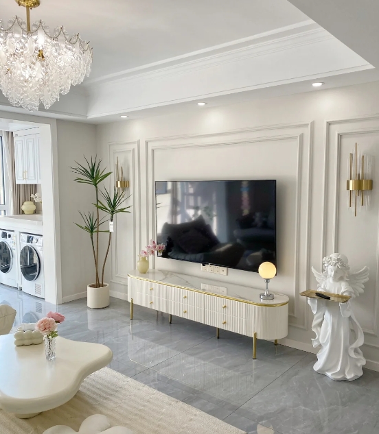 然后,法式奶油風(fēng)還特別注重細節(jié)和質(zhì)感。比如,墻面通常會選擇帶有紋理的乳膠漆,看起來既有質(zhì)感又不失溫柔。家具方面,也是以簡約、復(fù)古為主,配上一些金屬或木質(zhì)的裝飾元素,整個空間就顯得既高級又不失溫馨。